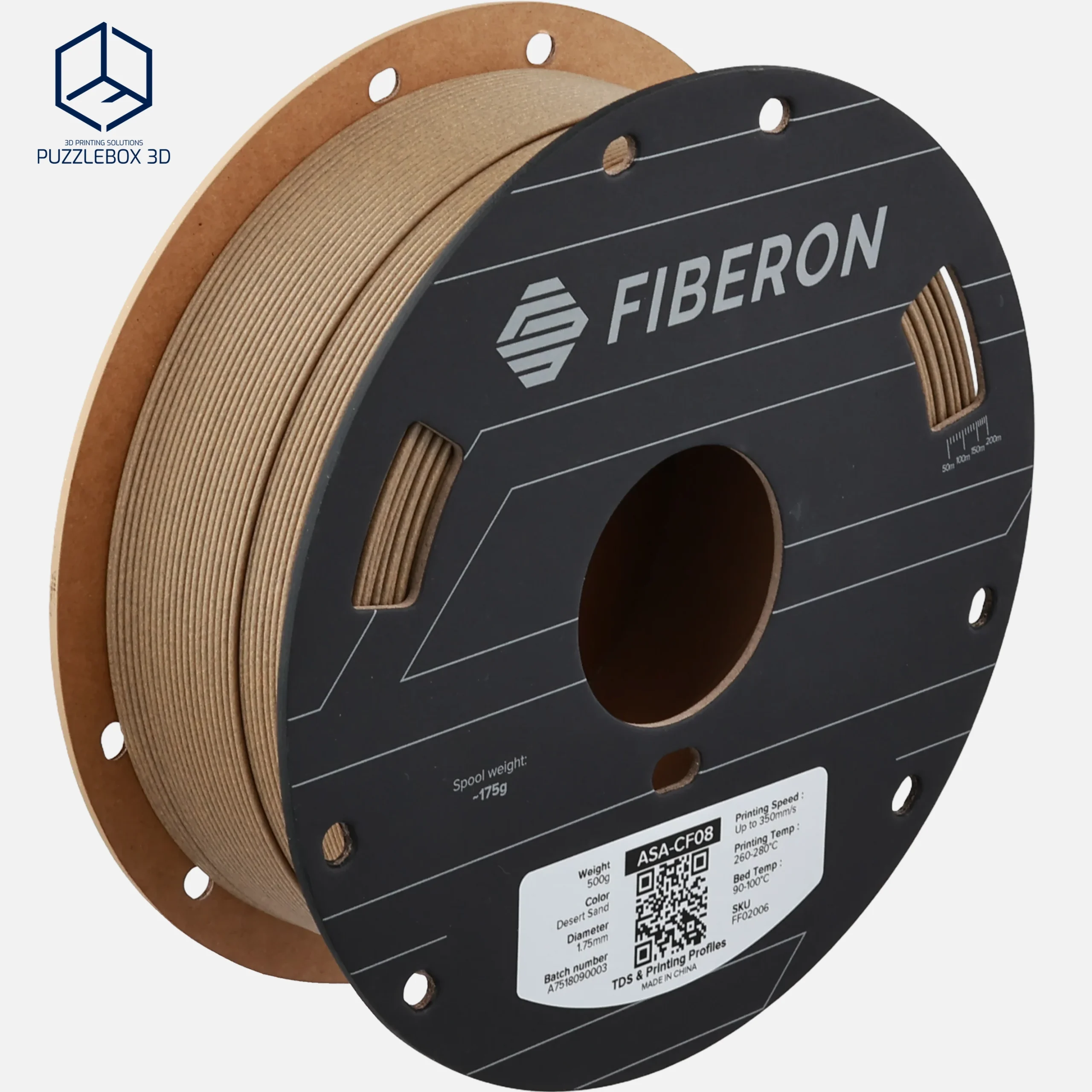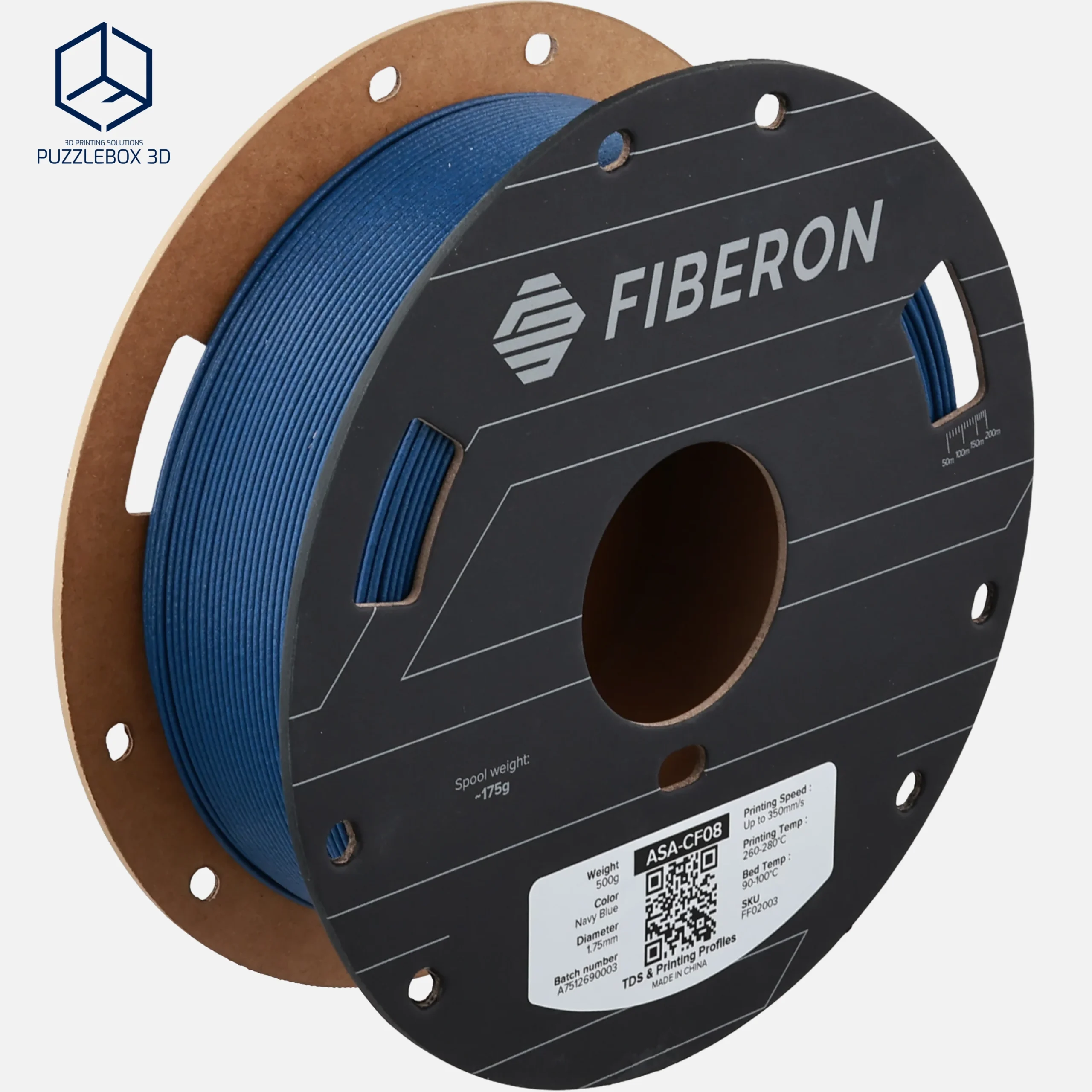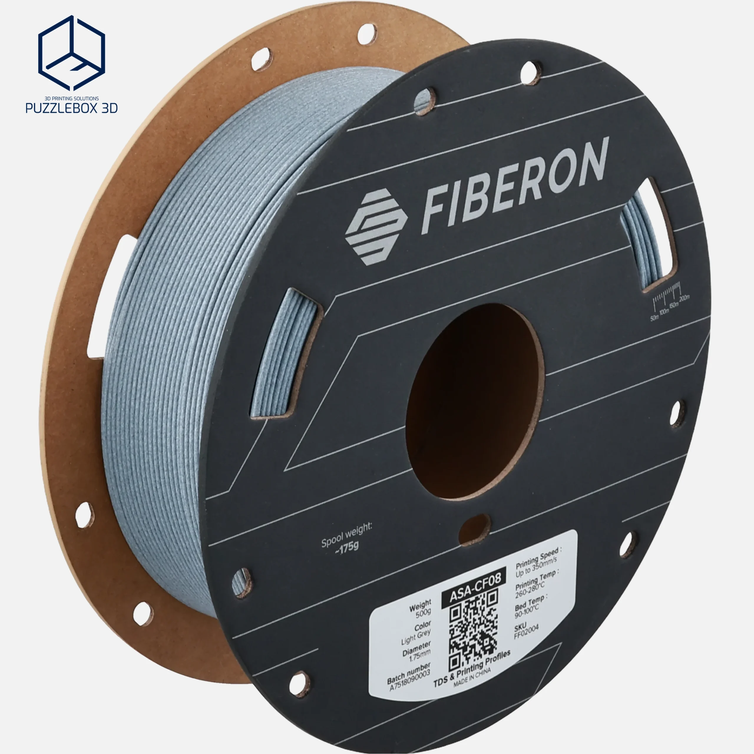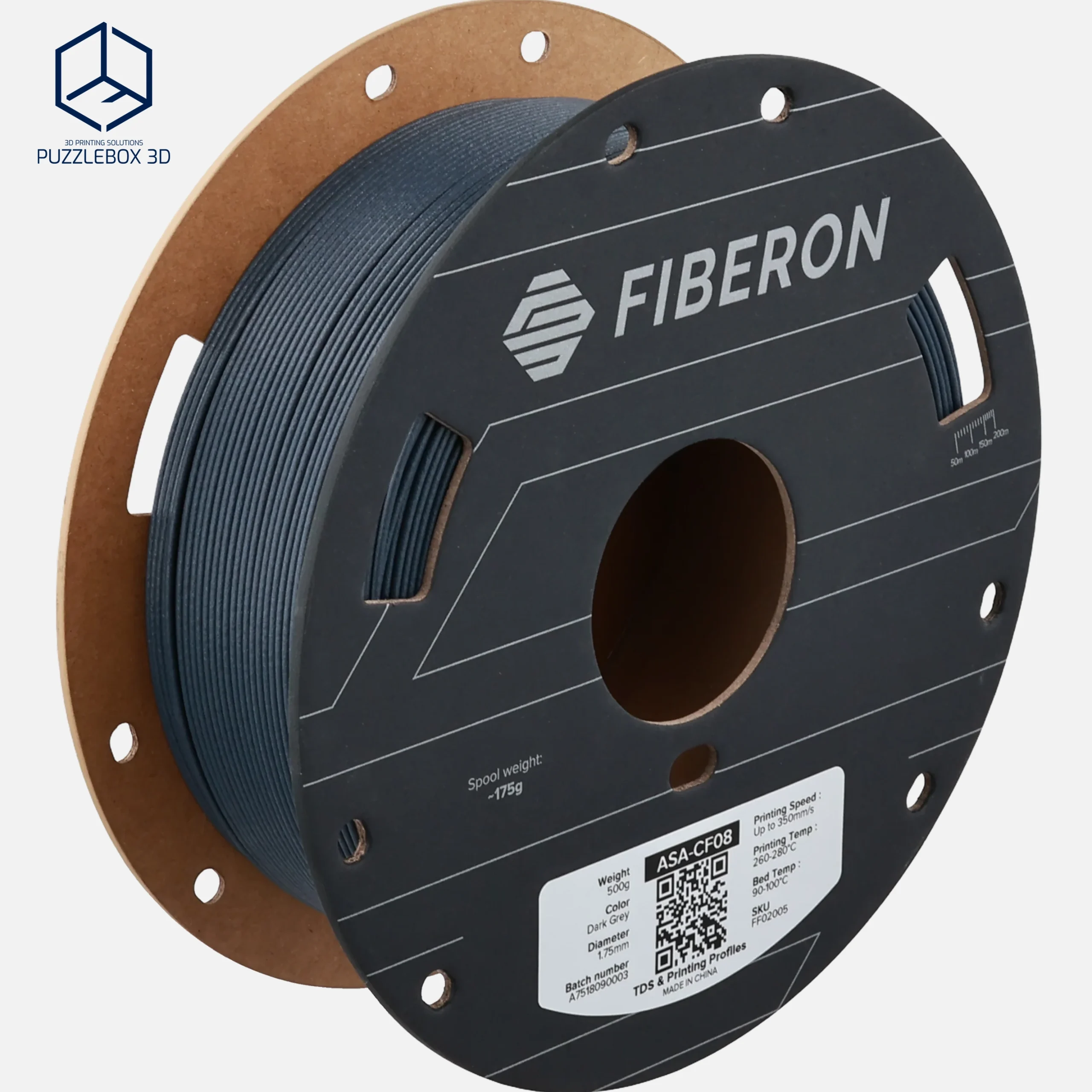 Fiberon™ ASA-CF08 is a carbon-fiber-reinforced ASA filament engineered for high rigidity, dimensional stability, and outdoor durability. The material contains 8% carbon fiber reinforcement, which significantly improves stiffness and structural strength while maintaining excellent UV and weather resistance. It produces a lightweight matte surface that hides layer lines, making it suitable for functional prototypes, outdoor components, and end-use engineering parts.