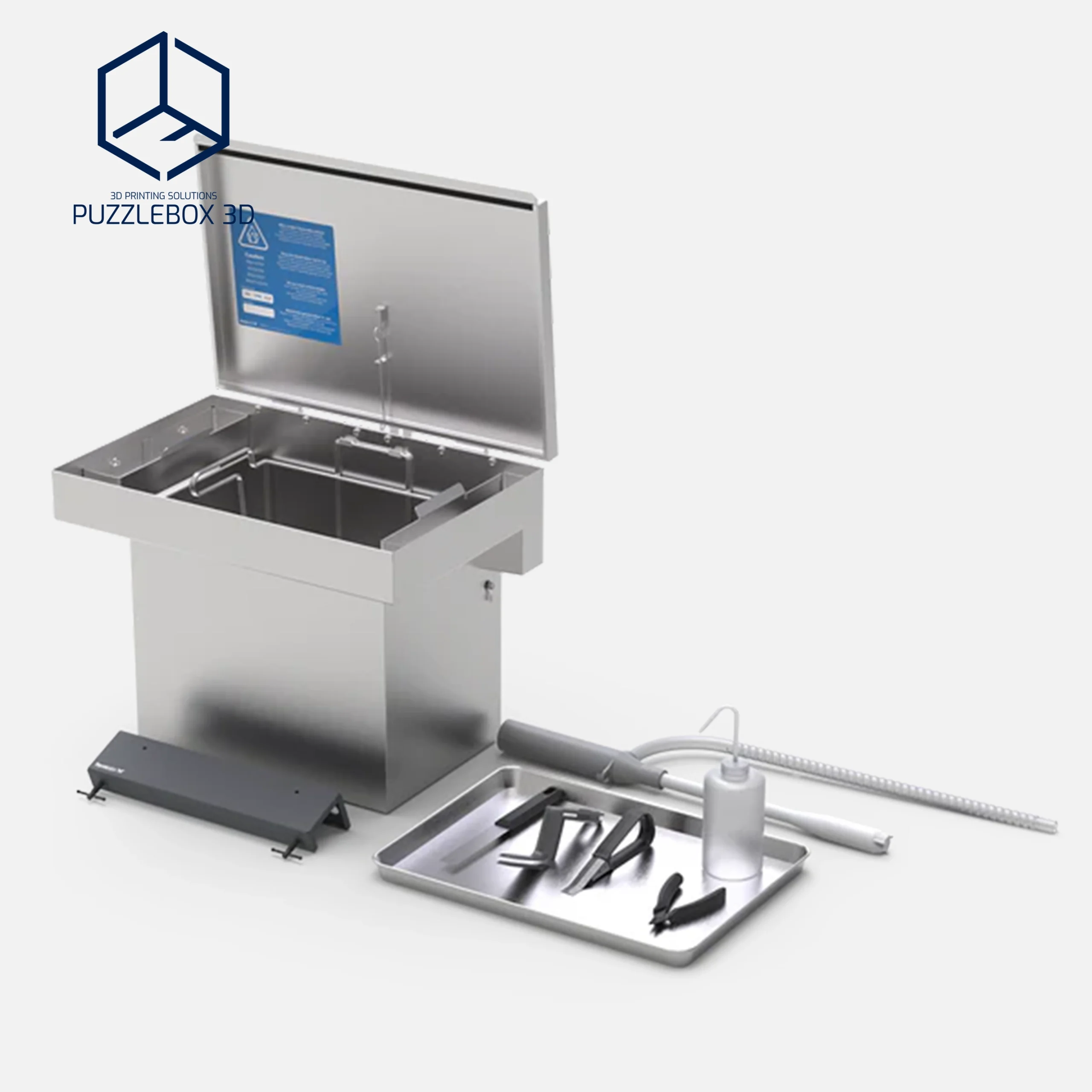 A set of tools designed for cleaning large-format prints, ensuring efficient and consistent post-processing.