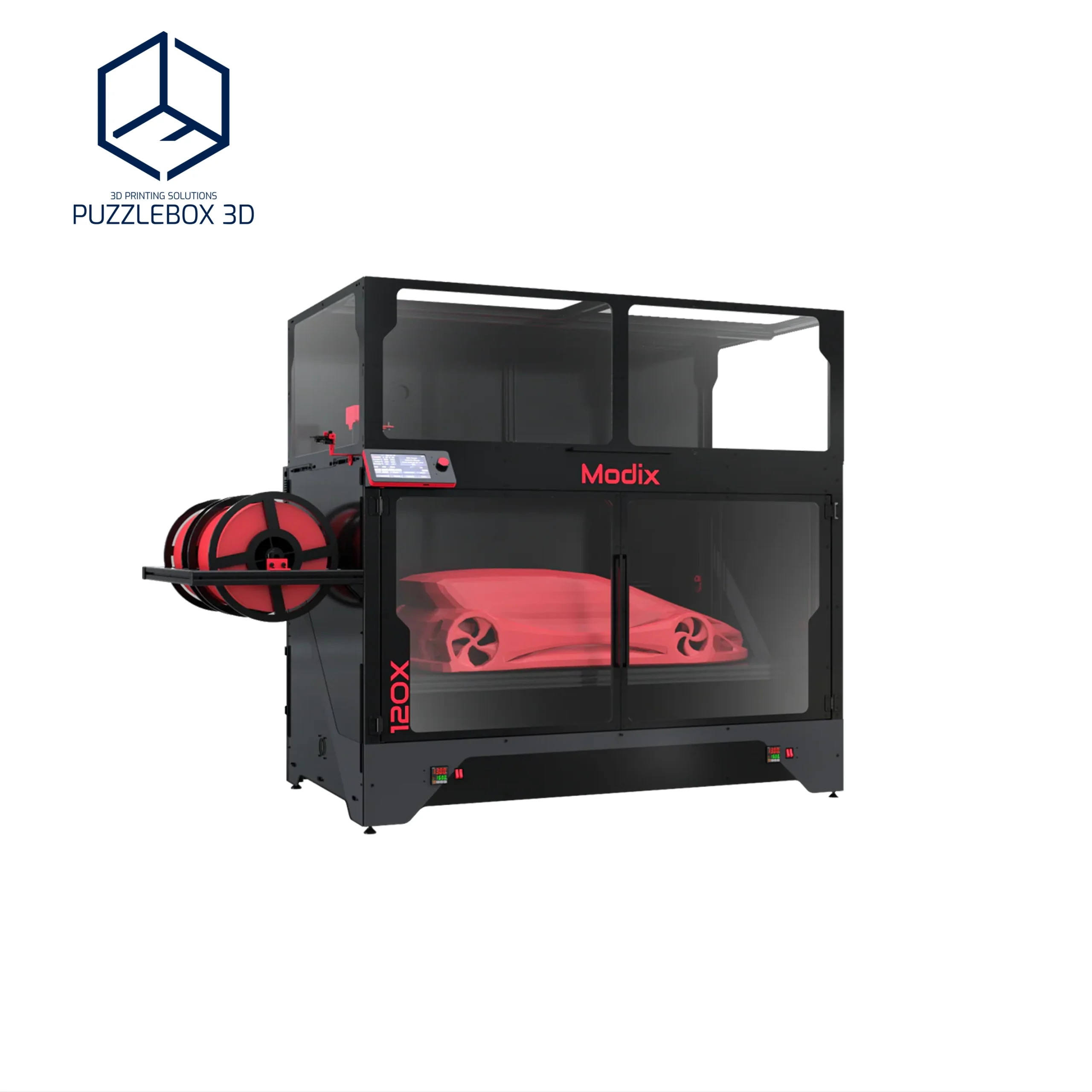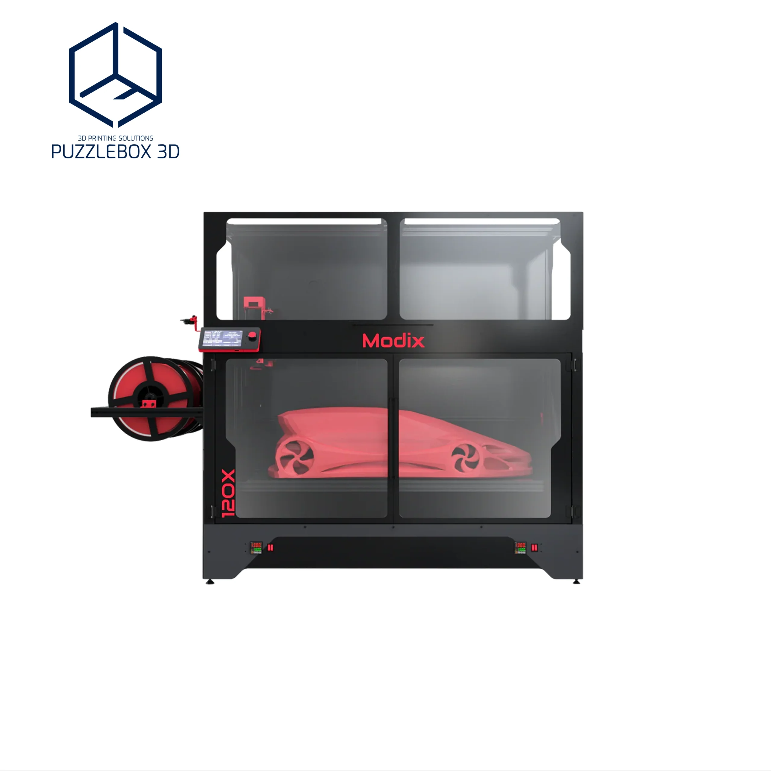 | Modix 120X V4 - Complete with Enclosure | FDM 3D printer; 1200 x 600 x 640 mm build volume; Enclosed; Industrial-grade; Stable operation. |