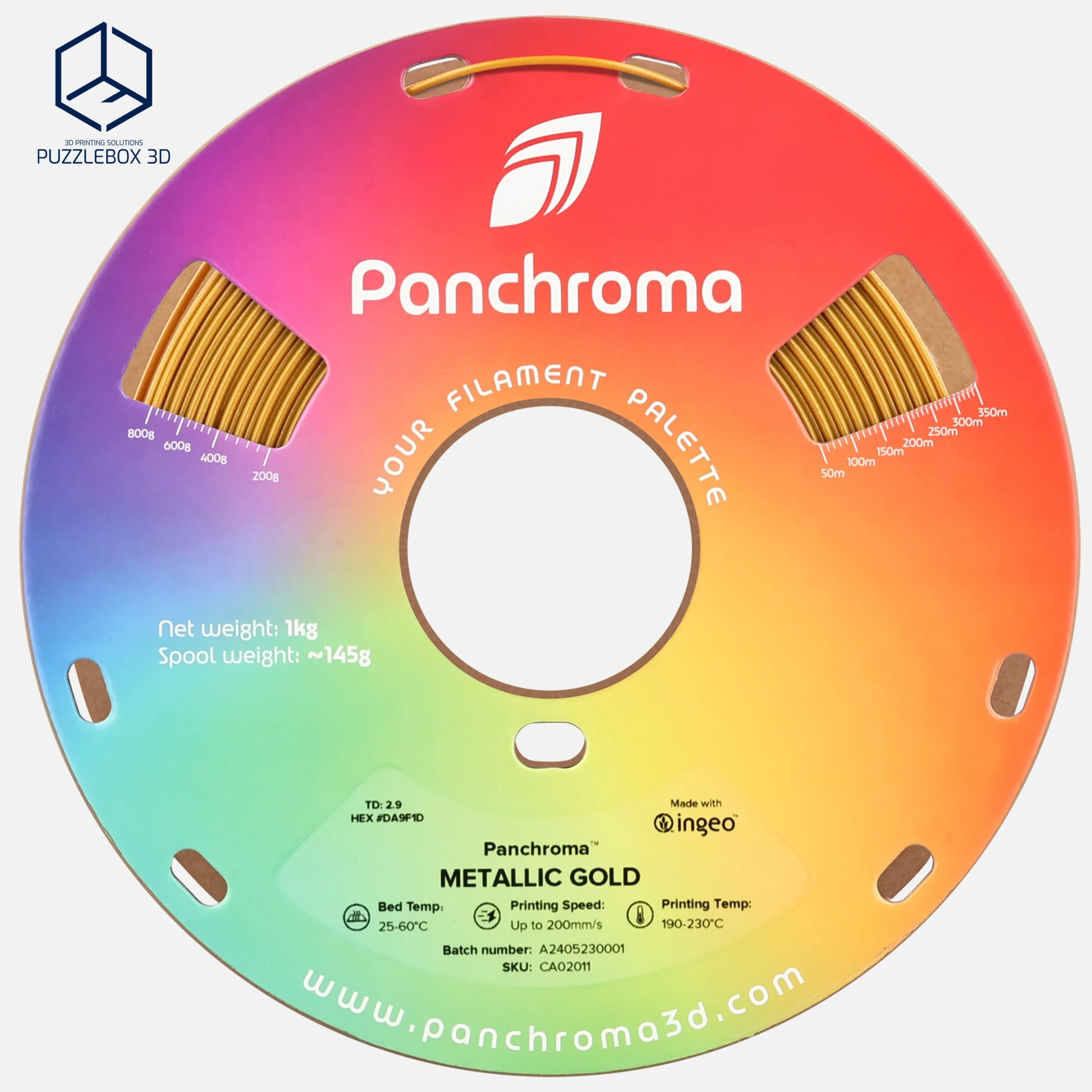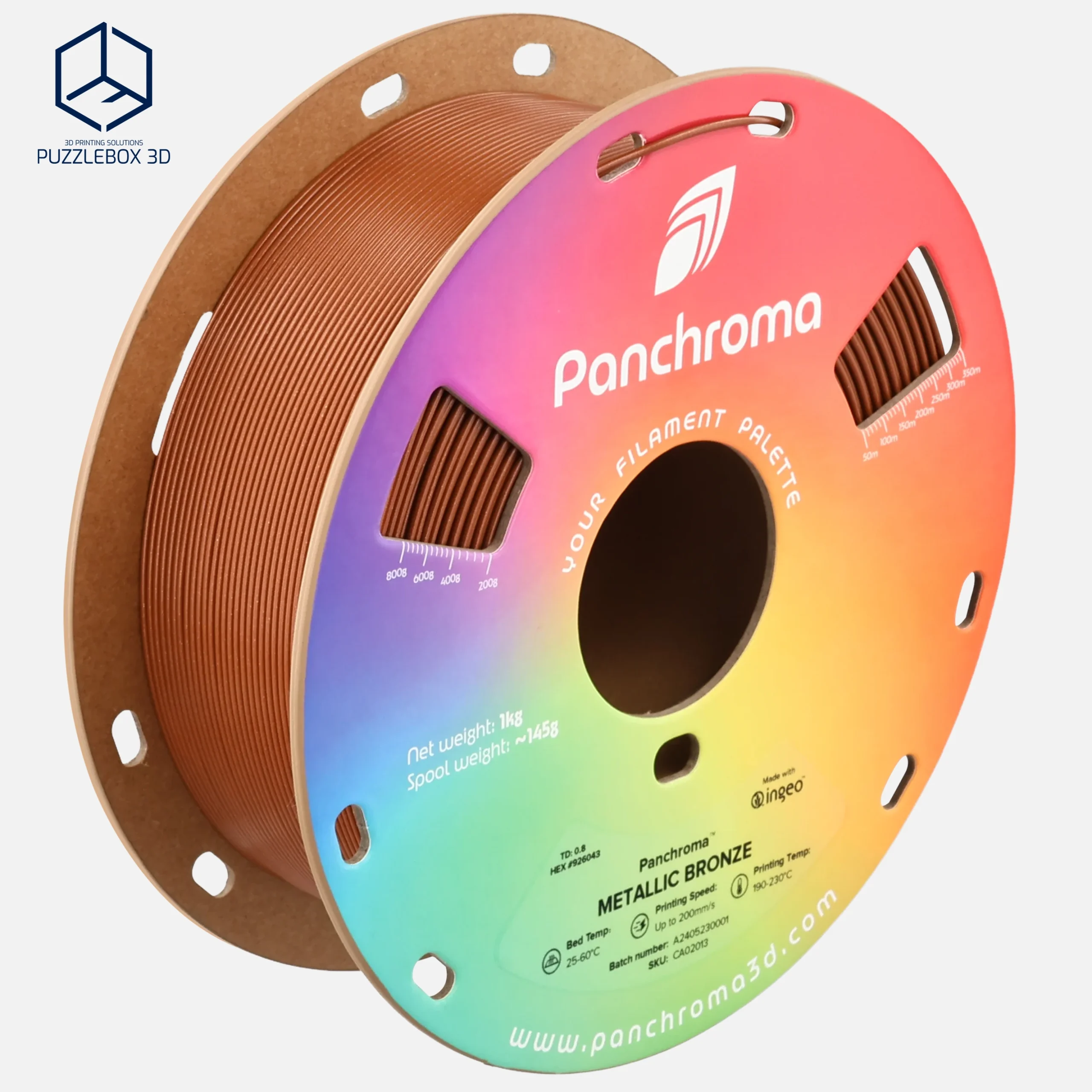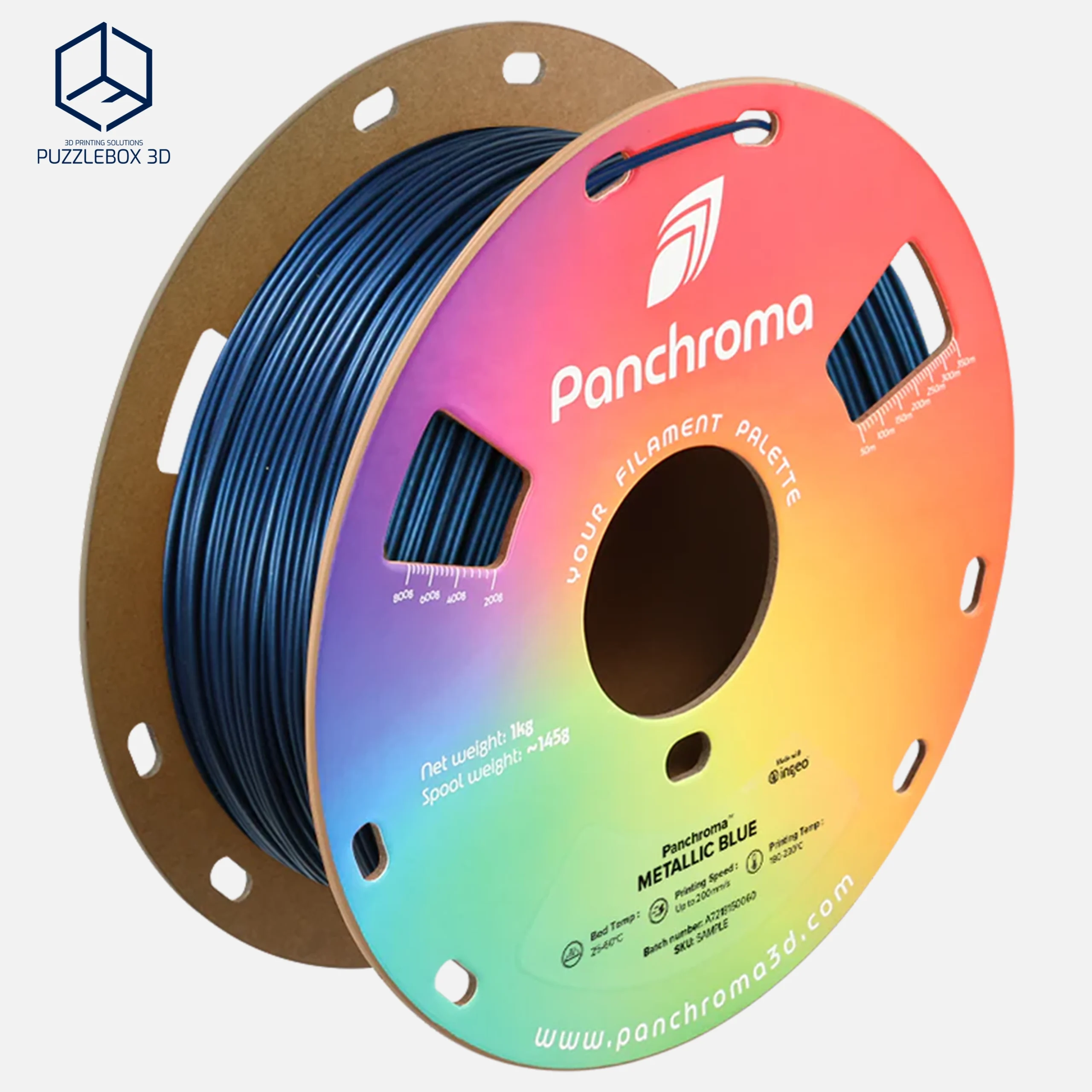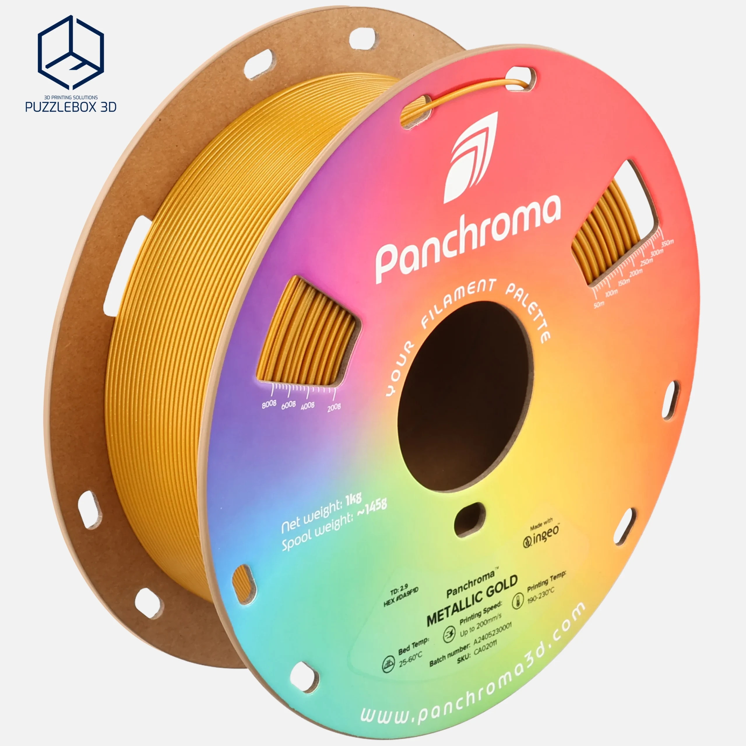 Panchroma Metallic is a PLA filament designed to produce prints with a metallic-looking finish and subtle shimmer. It maintains the easy printing performance of standard PLA while creating smooth, visually striking parts that resemble metal, making it ideal for decorative models, display pieces, and aesthetic prototypes.