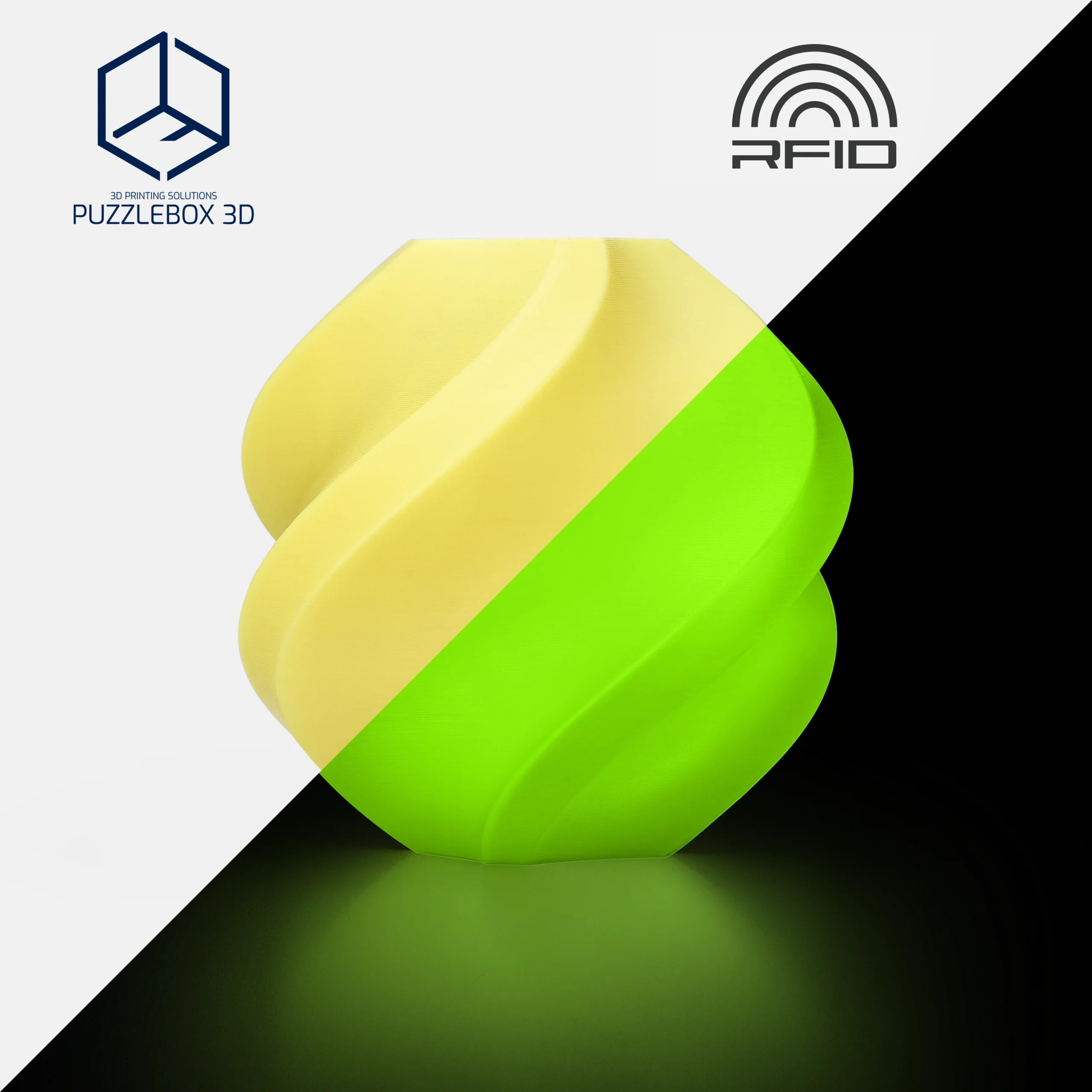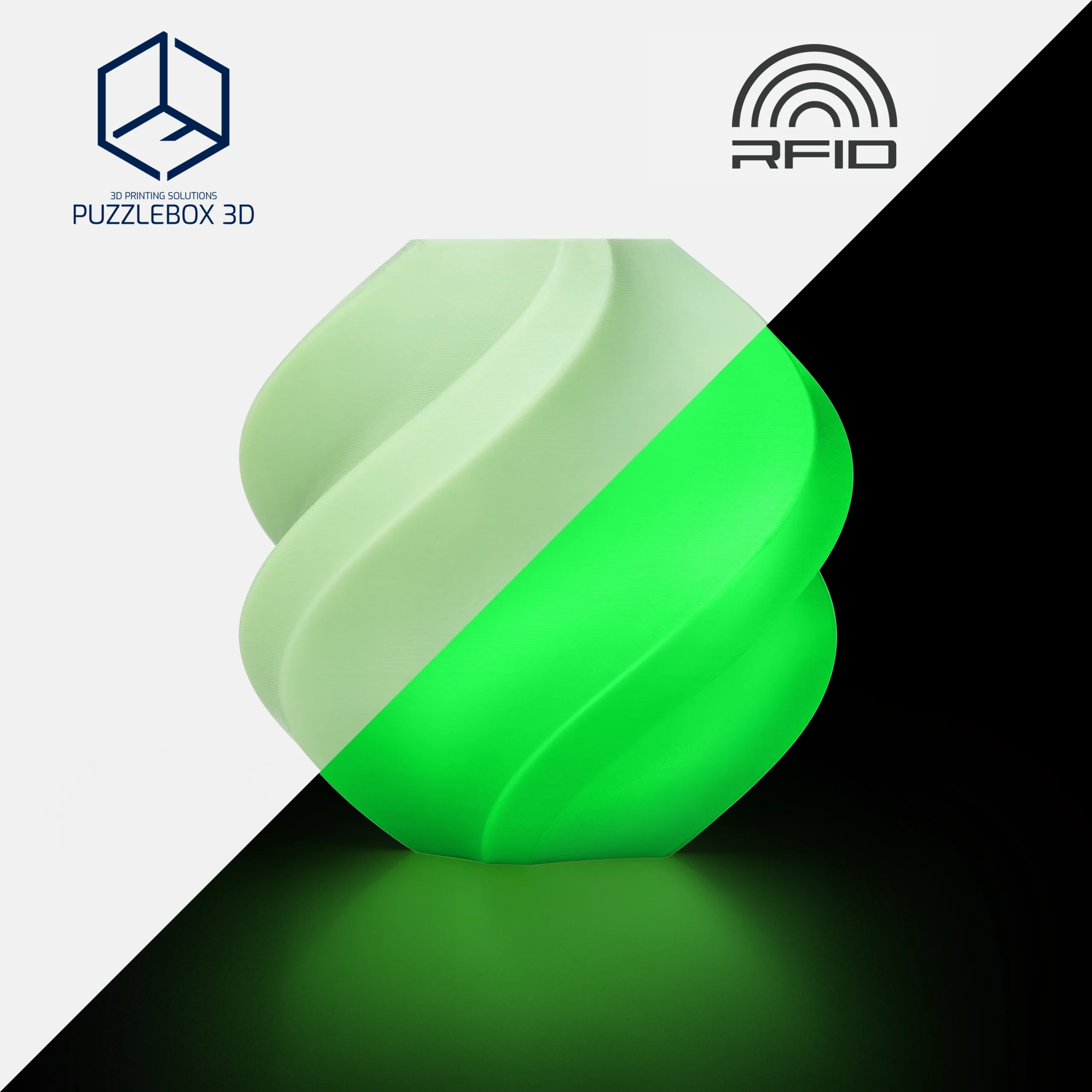Bambu PLA Glow is a high-performance phosphorescent filament that absorbs light and glows in the dark with exceptional brilliance. Designed for projects that need to stand out both day and night, this filament offers long-lasting luminosity and the same reliable high-speed printing performance as standard PLA. It is perfect for safety markers, creative displays, and novelty items. Due to the luminous powder additives, this filament is abrasive and should be used with a hardened steel nozzle to ensure longevity of your printing hardware.