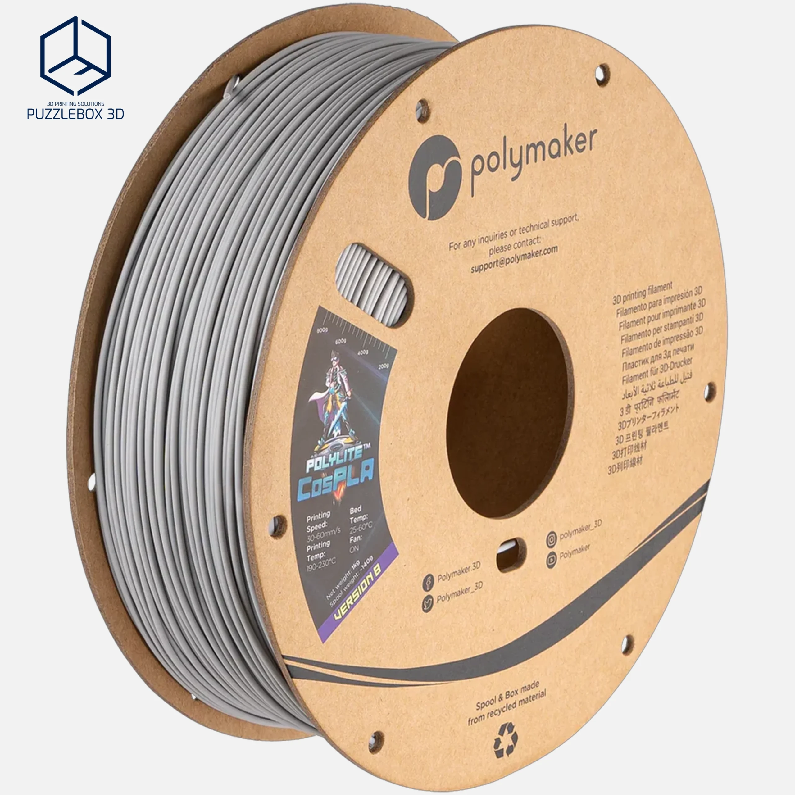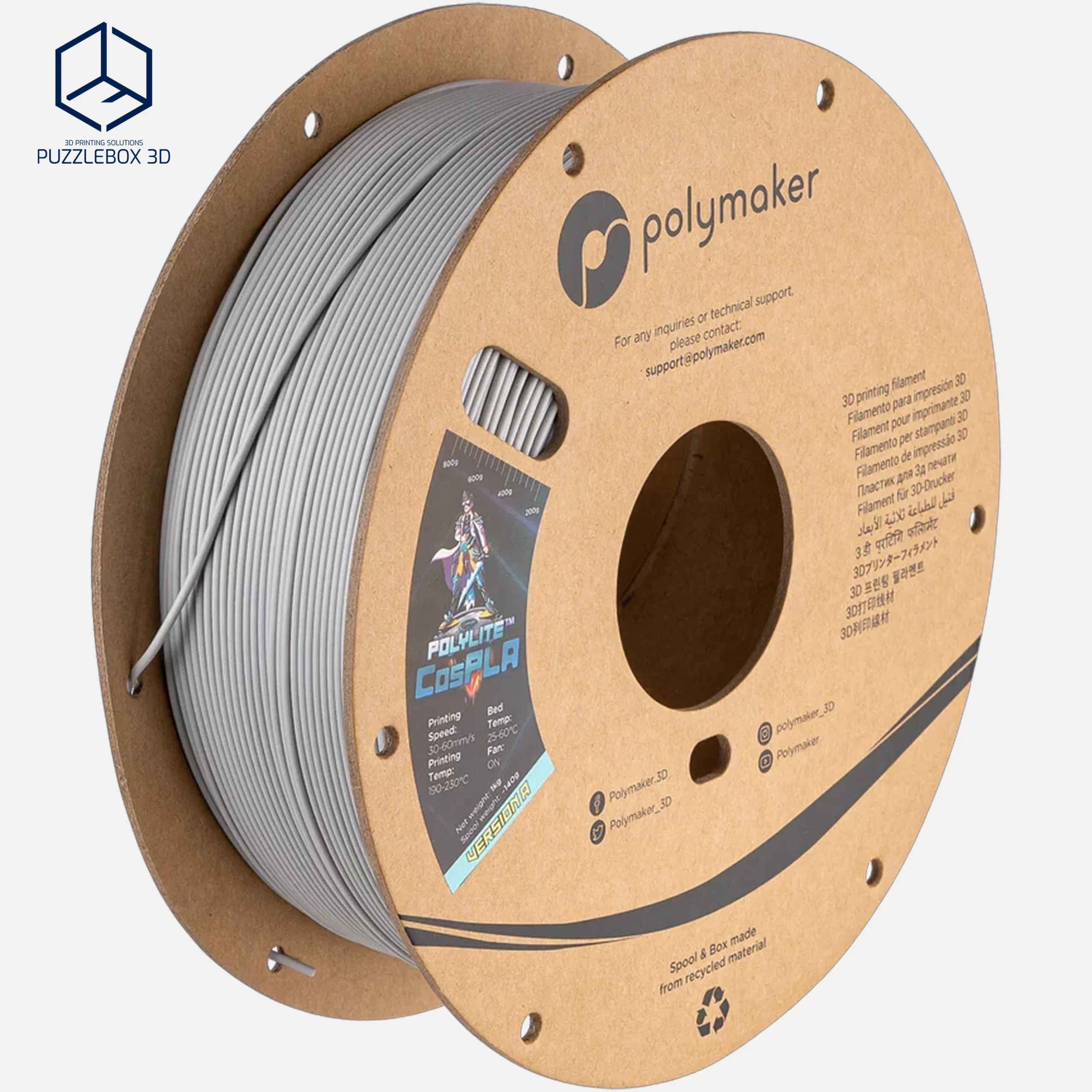 PolyLite™ CosPLA is a specialized PLA filament designed specifically for cosplay props and costume parts. The material is engineered to provide excellent sandability, strong durability, and superior paint adhesion, making post-processing faster and easier than with standard PLA. It prints with the same ease as regular PLA while allowing makers to produce smooth, professional-looking helmets, armor, weapons, and prop components with minimal finishing work.