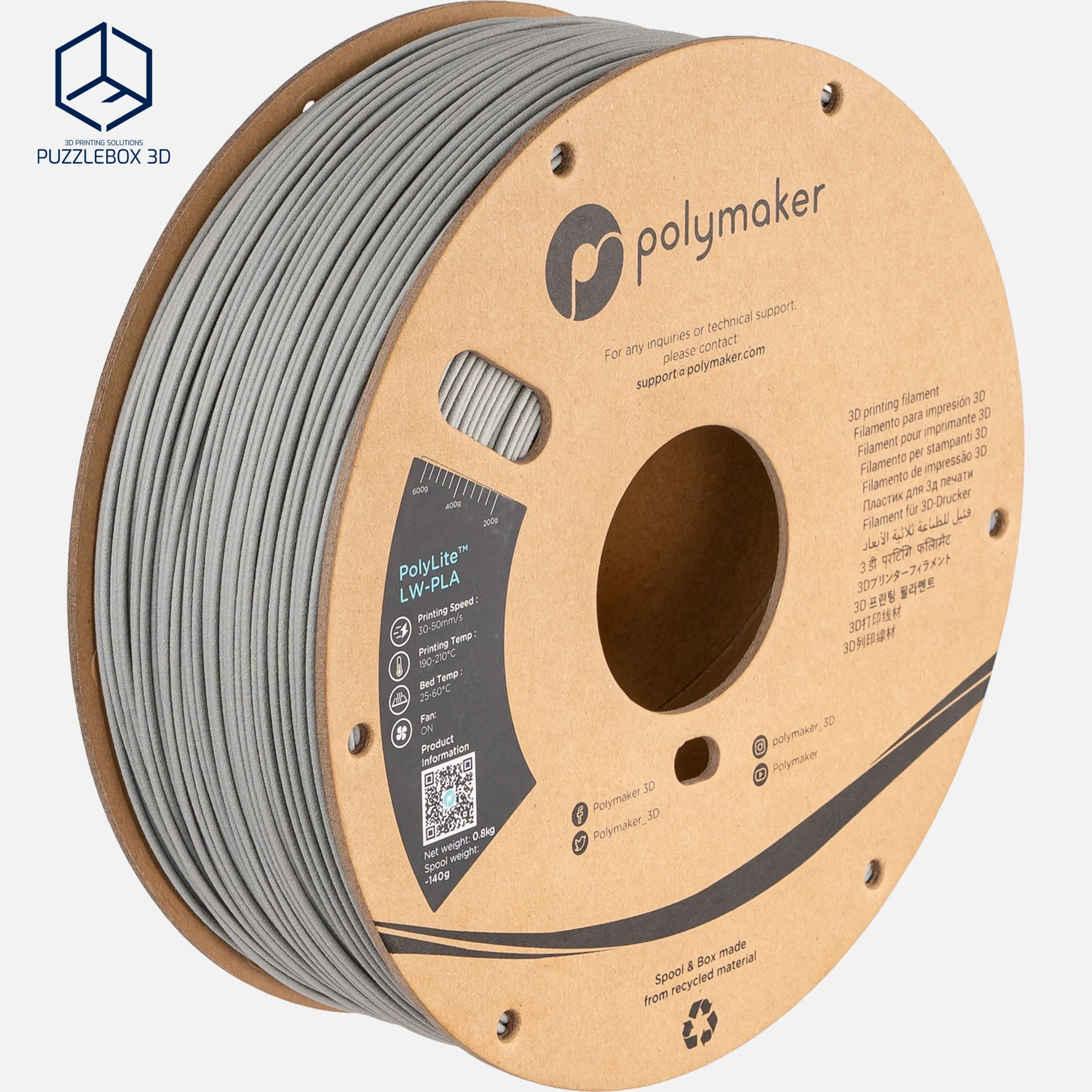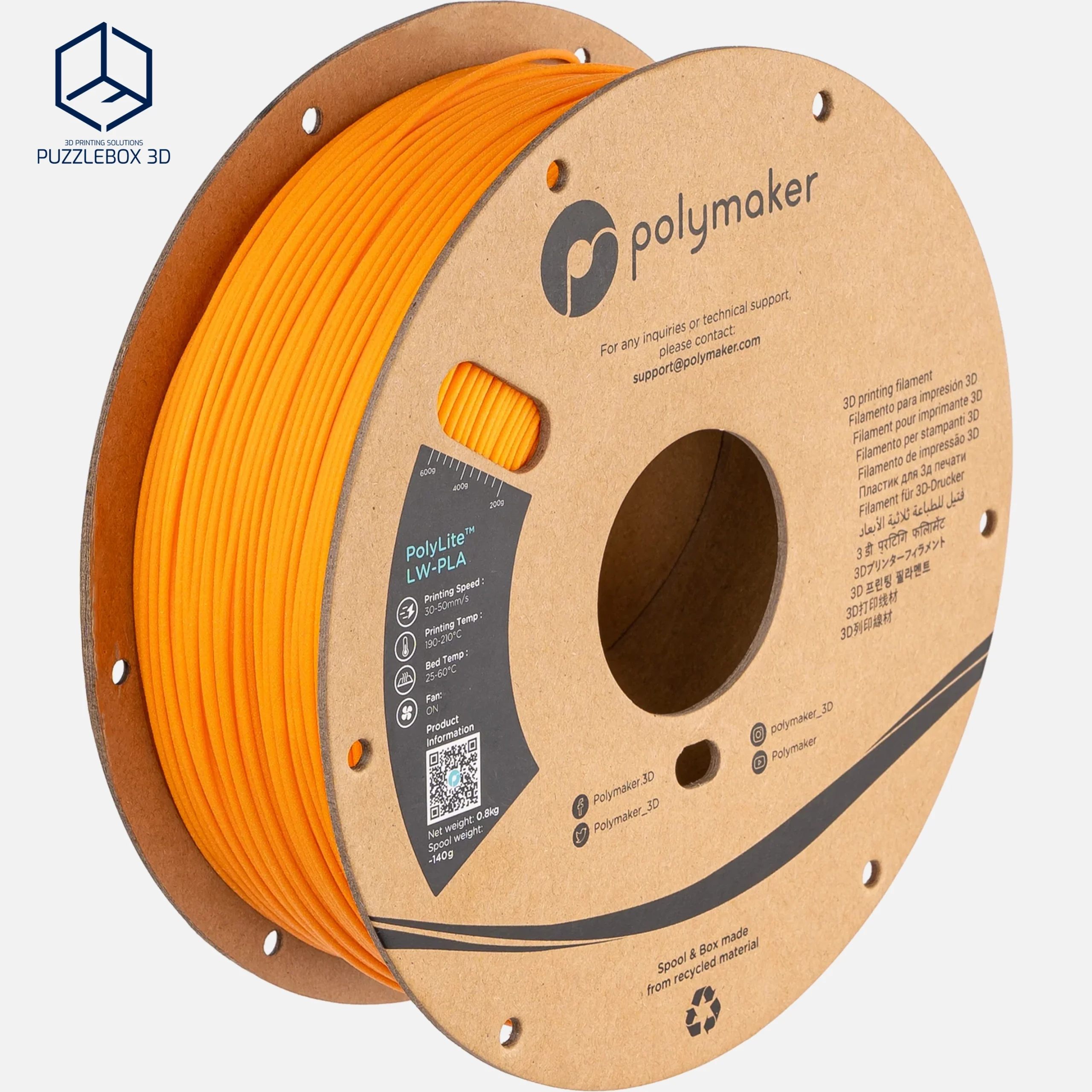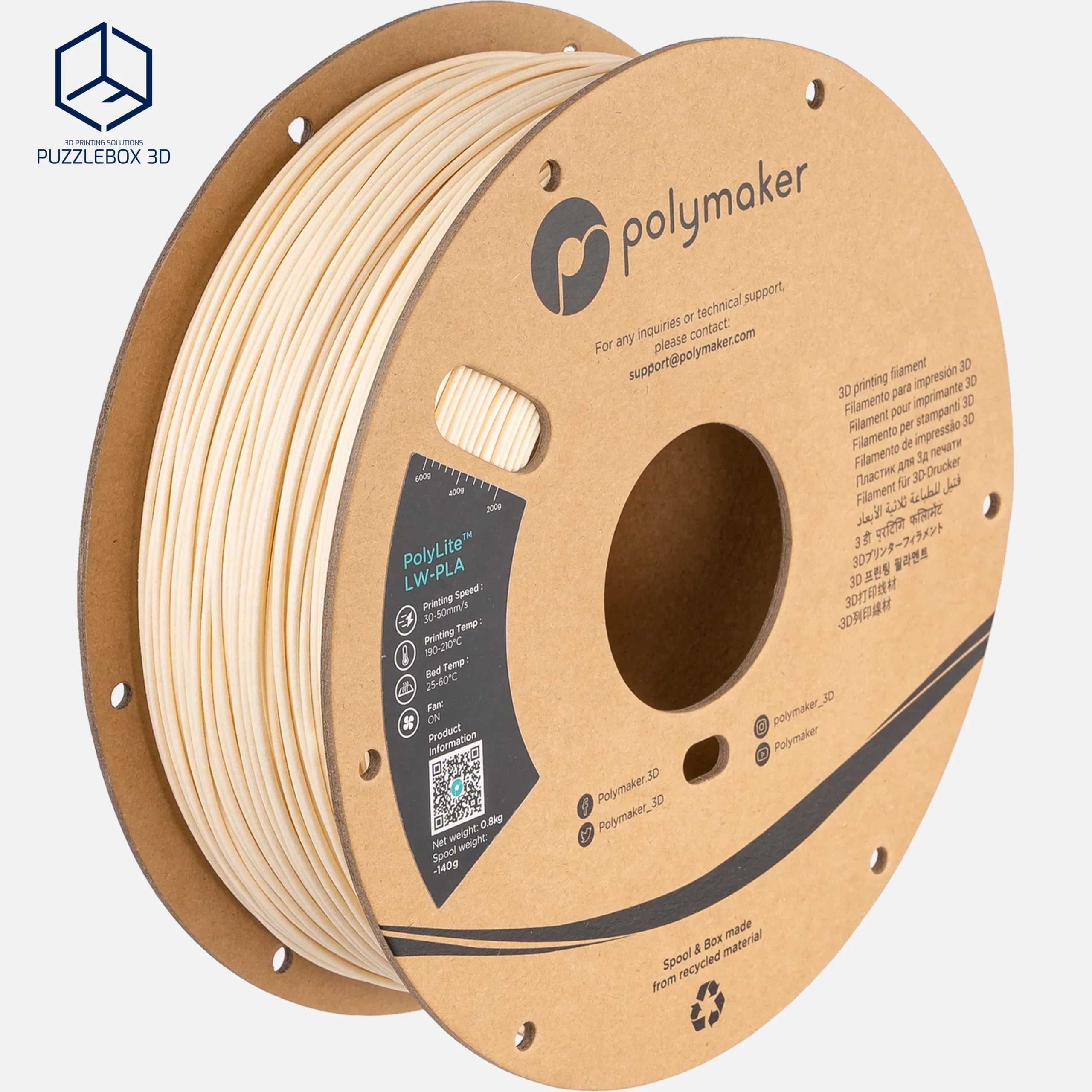 PolyLite™ LW-PLA is a lightweight PLA filament engineered with Polymaker’s Stabilized Foaming™ technology to create parts with significantly reduced density while maintaining easy printability. The material forms a micro-foam structure during printing, producing parts up to about 30–50% lighter than standard PLA with a smooth matte surface that helps hide layer lines. It prints with typical PLA settings and is ideal for RC models, drones, aerospace prototypes, and other applications where weight is critical.