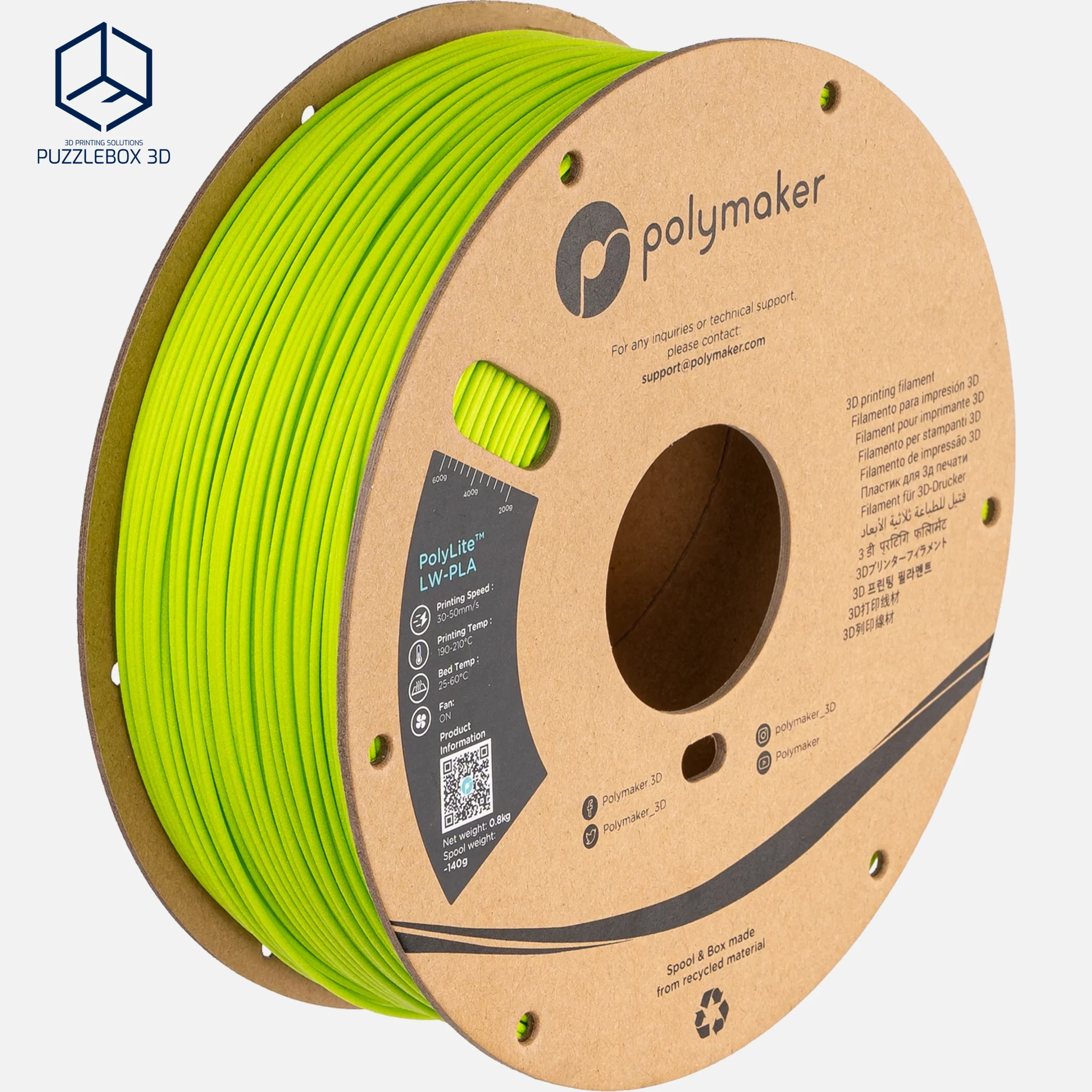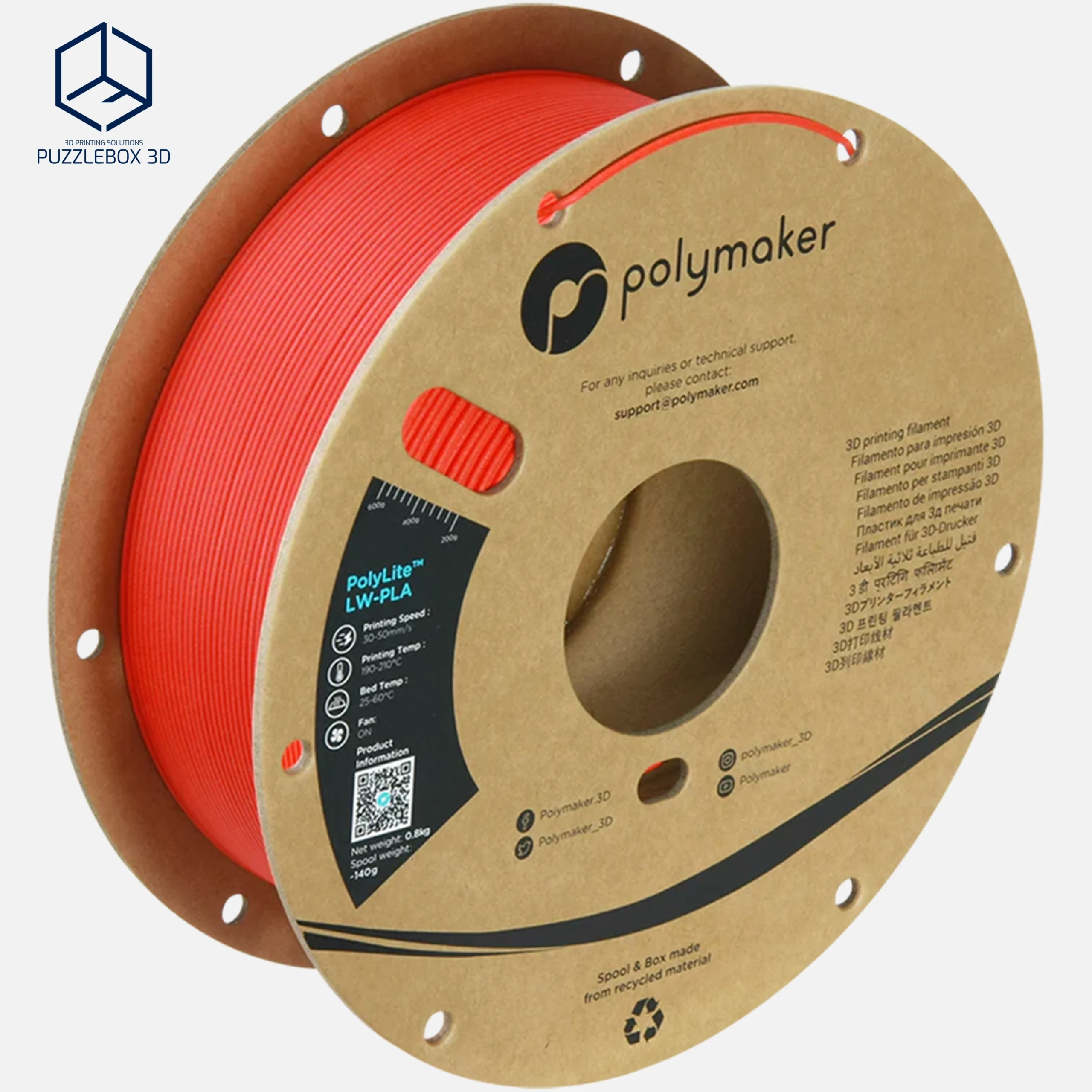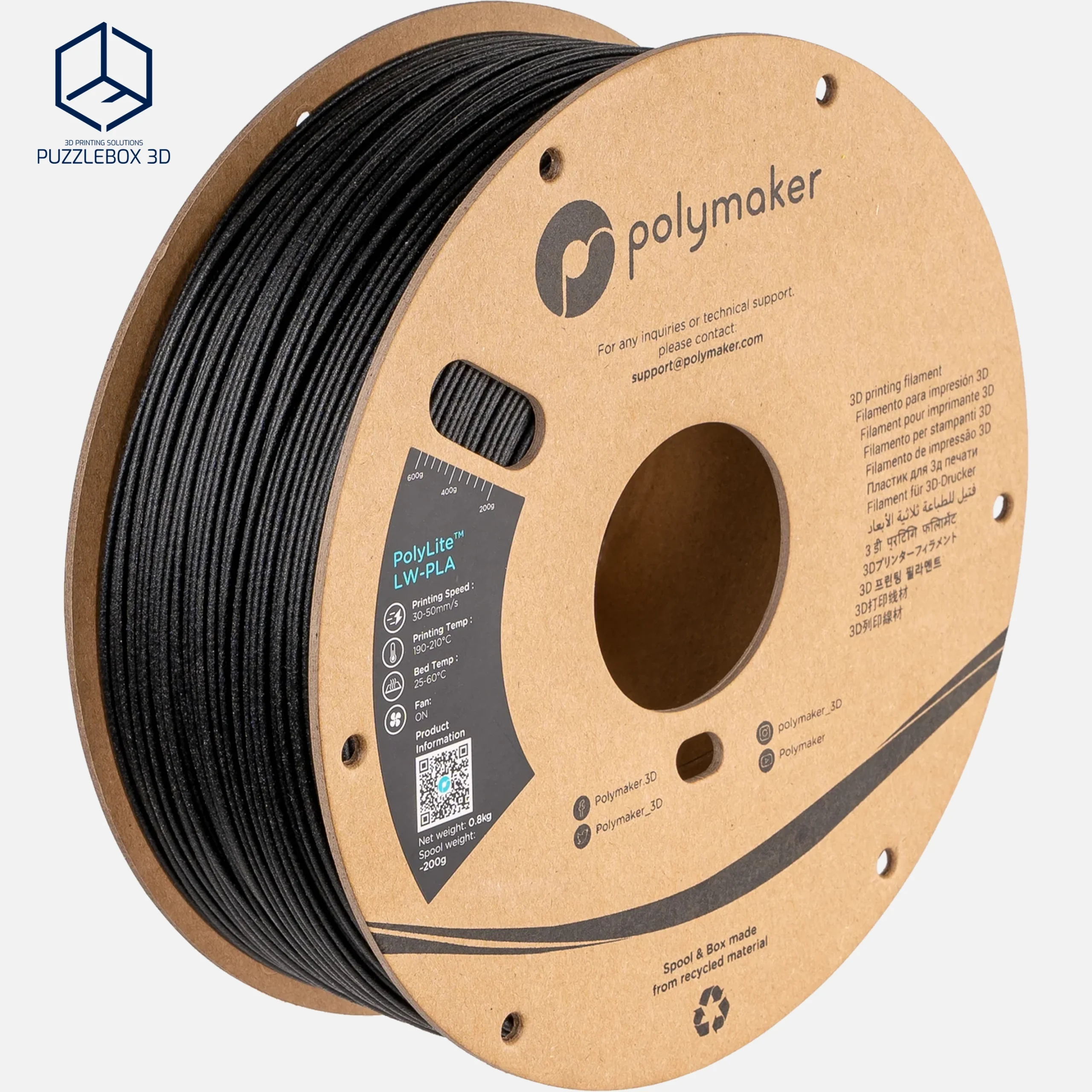 PolyLite™ LW-PLA is a lightweight PLA filament engineered with Polymaker’s Stabilized Foaming™ technology to create parts with significantly reduced density while maintaining easy printability. The material forms a micro-foam structure during printing, producing parts up to about 30–50% lighter than standard PLA with a smooth matte surface that helps hide layer lines. It prints with typical PLA settings and is ideal for RC models, drones, aerospace prototypes, and other applications where weight is critical.