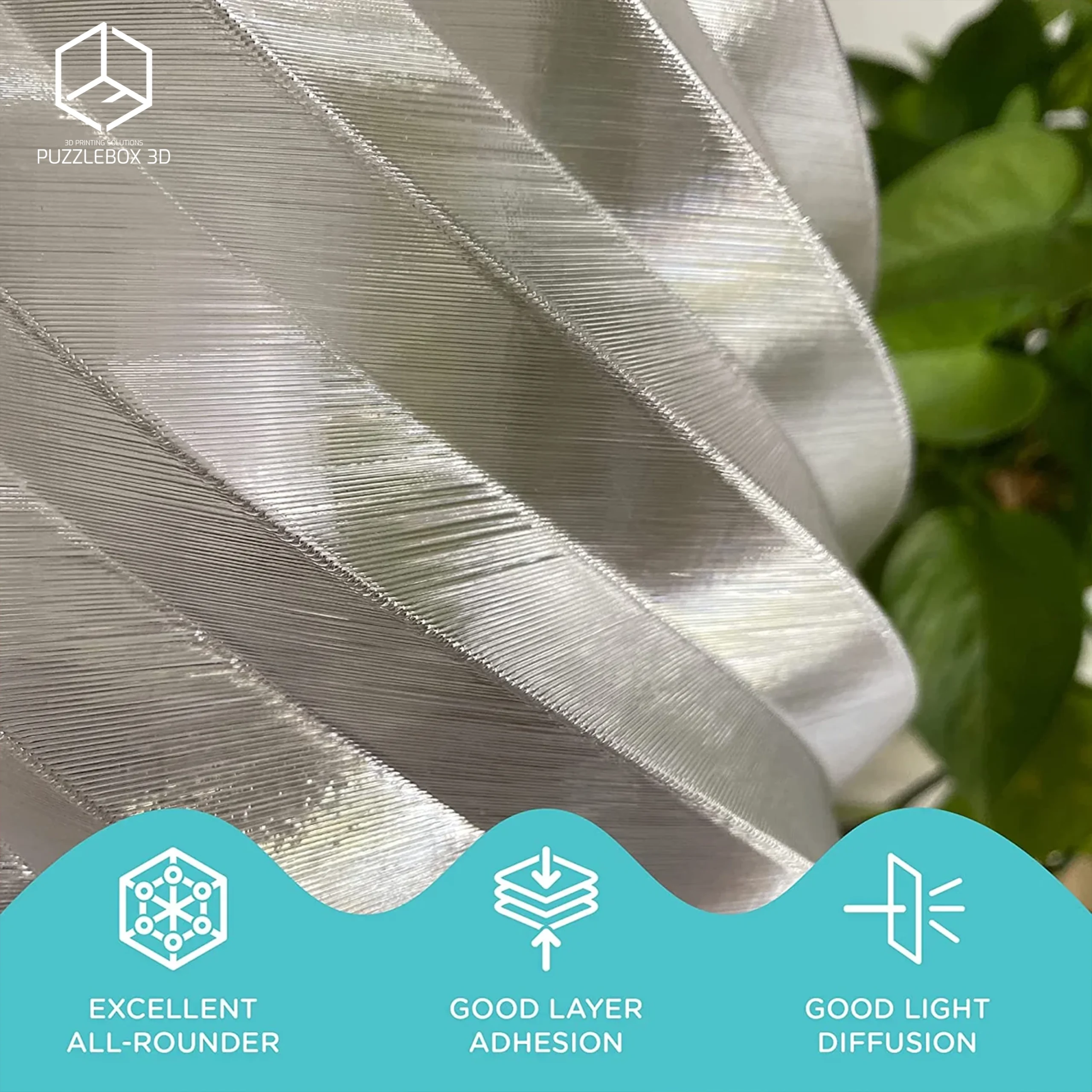 PolyLite™ PETG Translucent is a clear PETG filament designed to combine durability with attractive light-transmitting finishes. It offers strong layer adhesion, chemical resistance, and higher heat tolerance than PLA, while producing translucent prints ideal for lighting parts, decorative models, and functional components that benefit from light diffusion or transparent aesthetics.