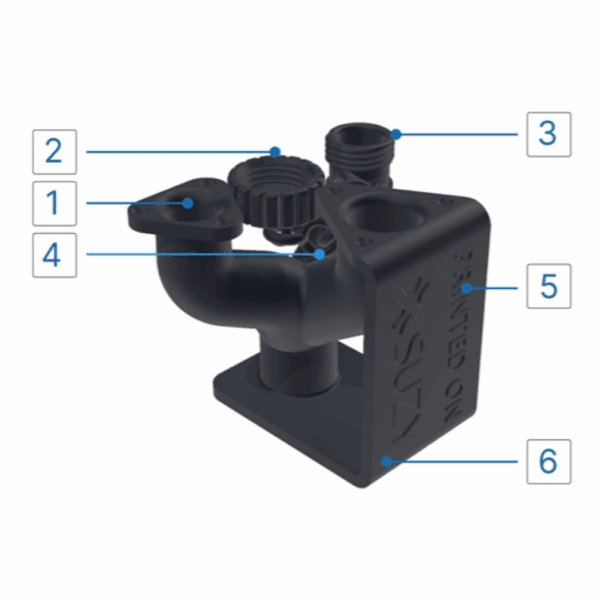 Collector pipes connected by an internal cutout – a complex geometry that challenges most printing methods.